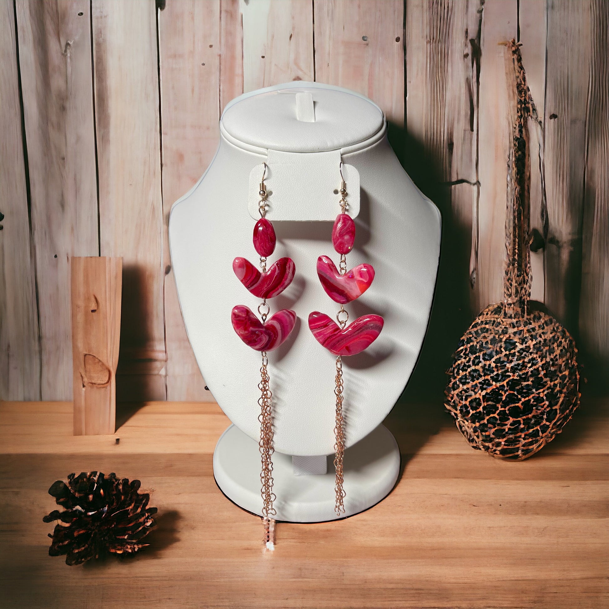 Earrings,Rose Gold Tone Finish,Fish hook Earring, Marble Heart Bead Colors: Red,Rose,Pink,White,Baby pink,Rose', Heart Charm Rose Gold Tone