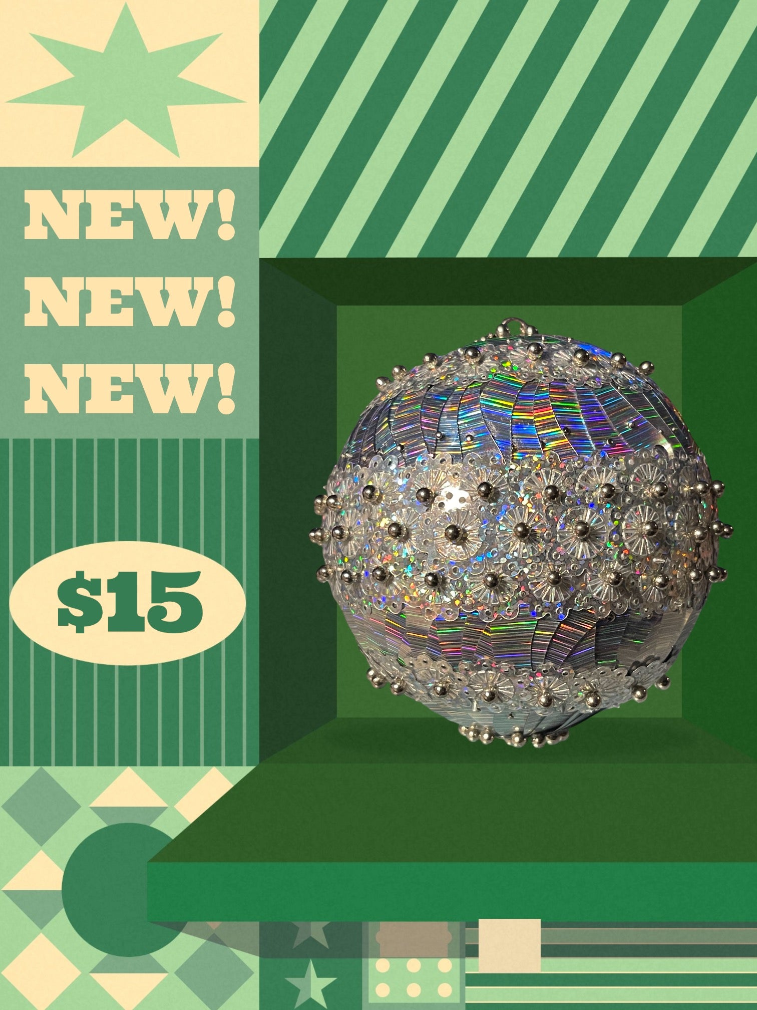 4” ornament with holographic foil sequins