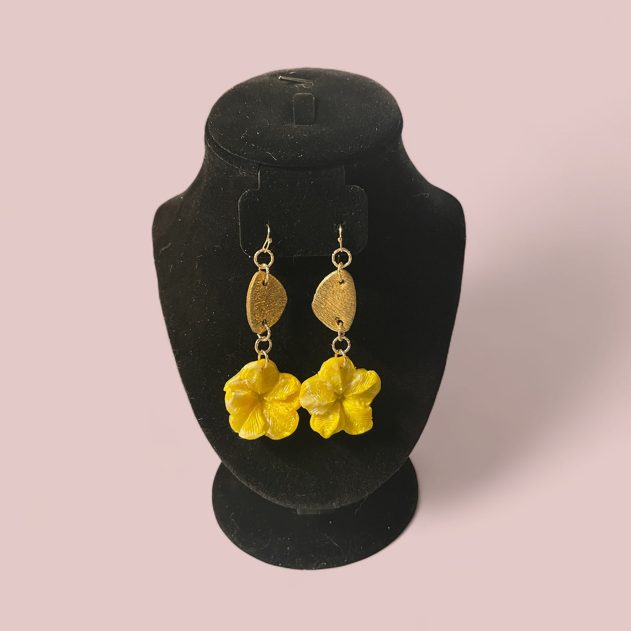 Polymer clay tropical flower and accent shapes with gold plated wire earrings